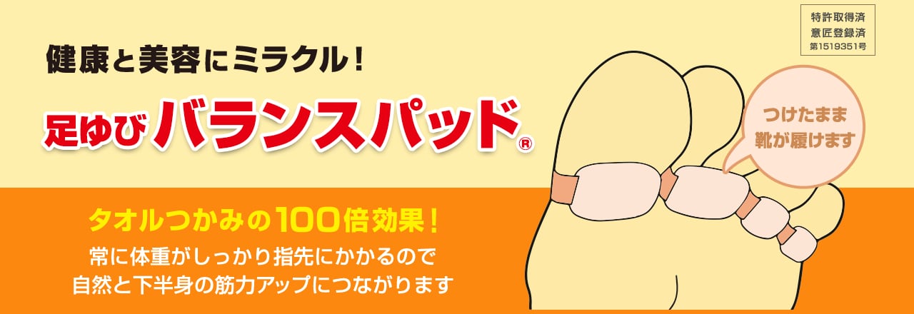 足ゆびの踏ん張りを強くすることで歩行バランスを改善、わざわざ努力をしなくても自然に足と体を元気にします。